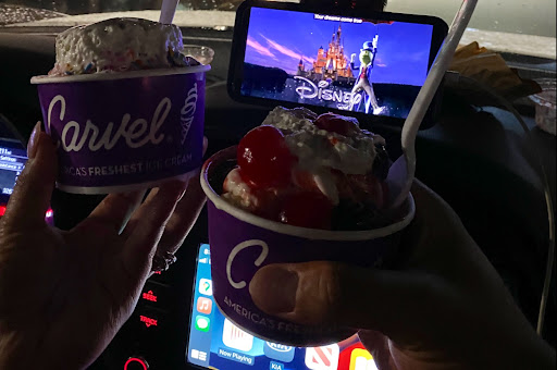This Carvel location is perfect. It has a large parking area. When you go inside they are fully protected and have a plastic shield between the people who work there and the customers. Works out for everyone.