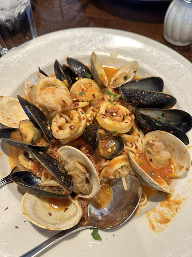 For our main course, we couldn't resist trying their seafood dish featuring mussels, clams, and calamari. I have to say, it was absolutely delicious. The sauce had just the right amount of flavor, and it complemented the seafood beautifully.