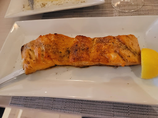 The mains - No flavor at all Salmon - 2 orders. Both were very overcooked. I was able to pick the whole piece up w a fork. Grilled chicken was so white, I was afraid for my son to eat it. It was also overcooked.