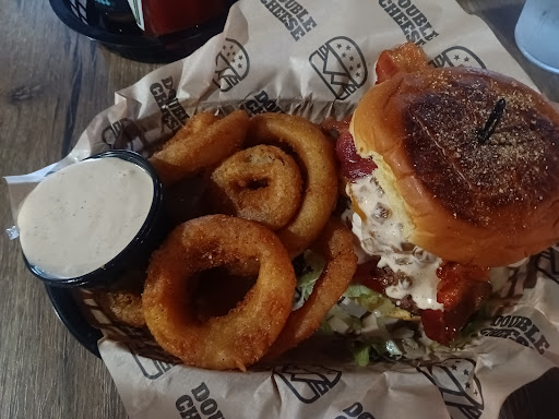 Read moreMy daughter, 2 grandsons and myself had our first experience with Double Cheese last night. We could have had a hi top table but my daughter wasn't sure if I would have been comfortable because the stools had no back (stop worrying...I've got this) So the hostess got us the table in back for the overflow people. We had the whole room to ourselves! So let's get on to the rest! WE HAD THE BEST WAITRESS EVER...AMANDA S. She was extremely helpful in answering all the questions we had about the food choices and the beverages! We all got different burgers, some with fries and onion rings. Best onion rings ever with remoulade sauce for dipping. I could only finish half of my burger but it was great the next day for lunch! Amanda was veery attentive to us even with us being in the back. When we left the place was packed. If you haven't tried DC yet...make sure you do! You will not be disappointed. NOTE: next time I am going to sit at one of the high tops where the...