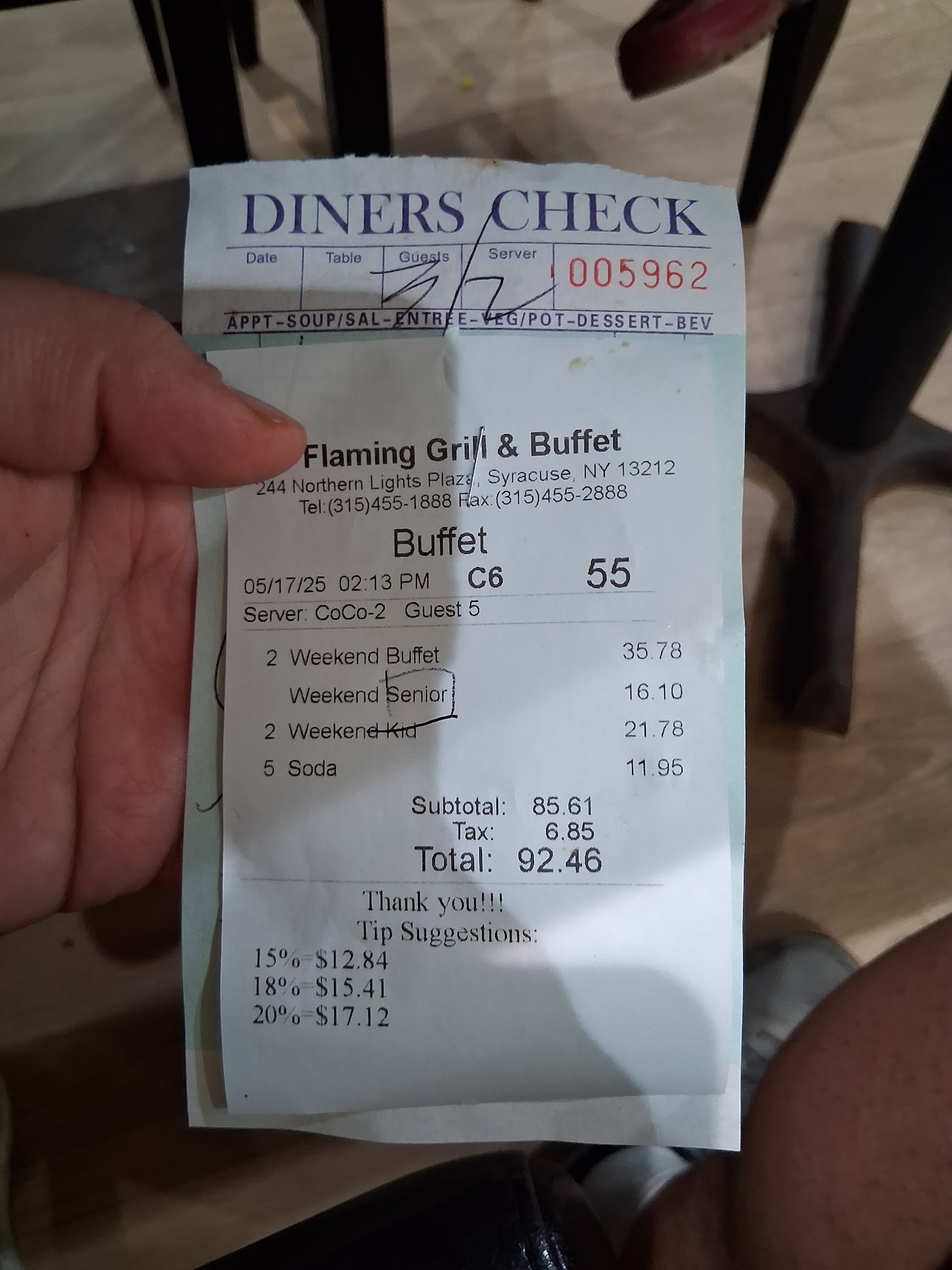Ā Ā Ā Read moreWent in at 1:00 Saturday for the lunch buffet with my wife and grandson . Noticed some awful looking old crab legs on the buffet ? Finished up and was handed the bill . Just under $17 a head with no drinks ! So now since the competition was run out of business, the have dinner buffet all weekend with old crab legs from the night b4 ! The food quality has gone way down also . Food was cold , not keeping the food at temp , and unappealing ! Save your money and go anywhere but here . We are not going there no more . We are traveling to Syracuse any way , we will have to see how Empire Buffet on Erie Blvd is lately . Flaming Grill , you will price yourself out of business ! We are through ! 9-9-23 Here is a update to my honest review . We went to a very nice Buffet in Ithica . Nice new BIG building , you know rent is high . Great food , big selection , $35 for the 3 of us adults for Saturday Lunch Buffet , no drinks . Today we were on other side of state. High cost of living near Albany . Went to local Buffet. Had own nice building , clean , fantastic food , Huge selection , everything was kept hot and fresh , probably best Buffet in NYS . $35 , no drinks for 3 . Now come on Mr Flaming Grill Buffet owner . They can do it , what is your excuse except for plain greed ! Old American saying , " You reap what you sow " sooner or later people will get around and get wise to your game ! Get it right , or go home ! There review is no exegeration , I'm tired of people taking advantage of gullible people . Also when you gouge on the price , people try to make up for it by not tipping your staff good . Ask them , I bet you their tips are very short . You are even hurting your own staff to line your pocket . I really can't see you lasting much longer !...