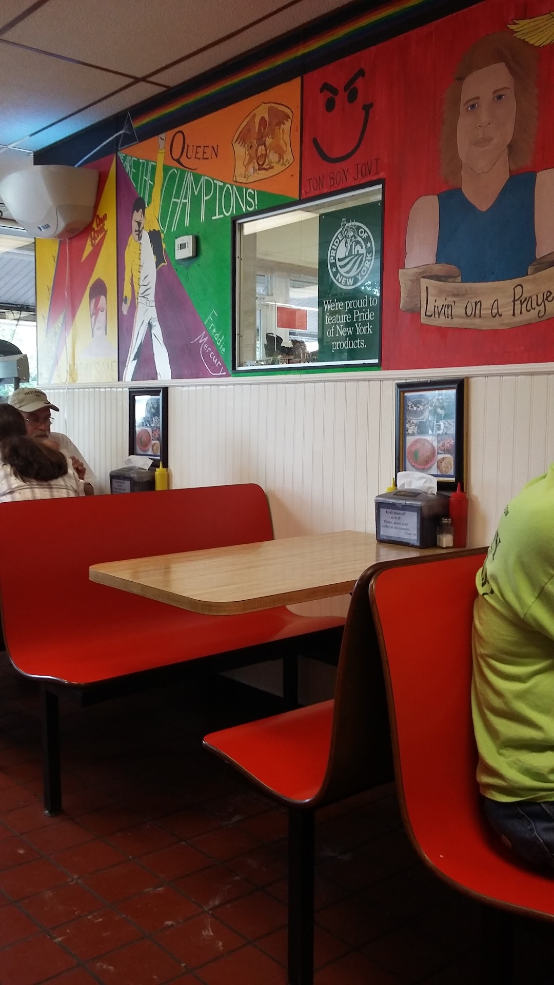 I drive well over an hour just to get the broasted chicken here. It's my fave thing on the menu. Great little place for burgers, hotdogs, and yummy homemade ice cream. Eat indoors or outside on sunny days. Nice kids working the counter and the owner is almost always in the kitchen. Very casual and cosy place with kitsch rock n roll wall murals. Can't say enough good things about that chicken though! Generous food portions. They also sell ice cream cakes. Lovely drive in the country to get there. A must stop place if en route to Utica...