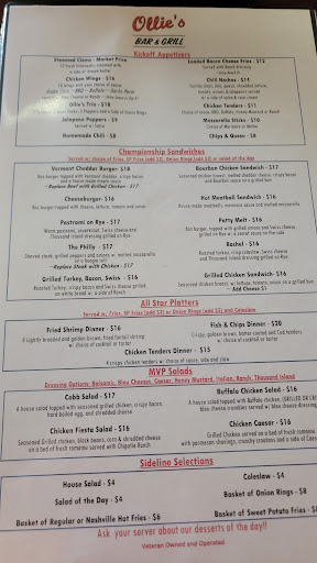 Ollie's is a great new addition to the village of Schuylerville. It is a veteran-owned pub serving delicious food with a variety of daily specials that round out the regular menu nicely. There were several, so I don't remember them all, but I know there was a pizza log and a couple of kinds of quesadillas, plus Monday night football beer specials.