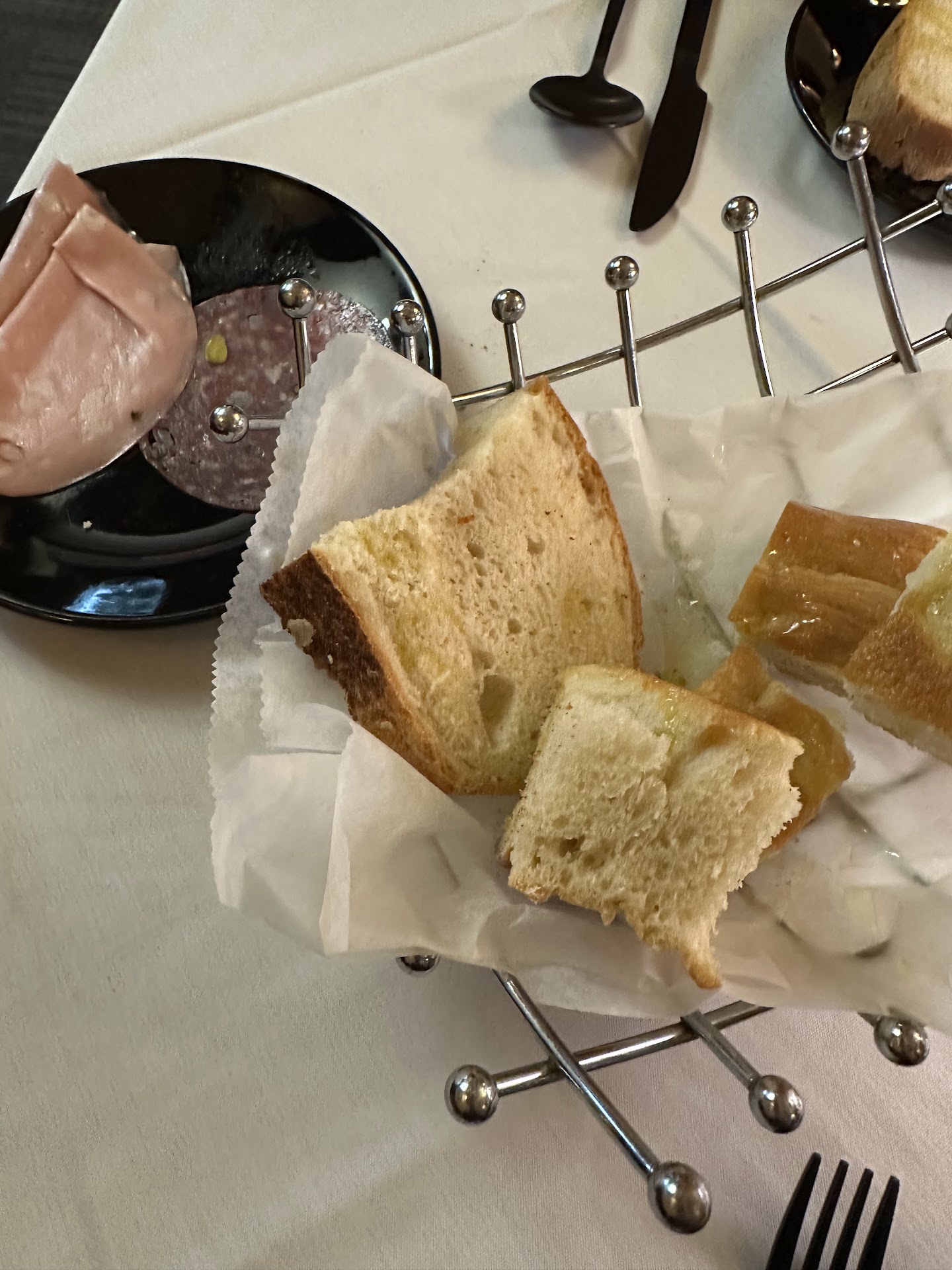 Dinner came with a bread basket that included both focaccia and a boule style bread, all drizzled in garlic oil. Additionally they brought out a plate with a few slices of mortadella and salami along with the bread, which was a really nice touch, and unexpected. I’m not sure if this is standard or something they were doing to keep diners satiated while waiting for food on a busy night, but regardless it was a classy move and good hospitality. (I hope it’s standard, btw!)