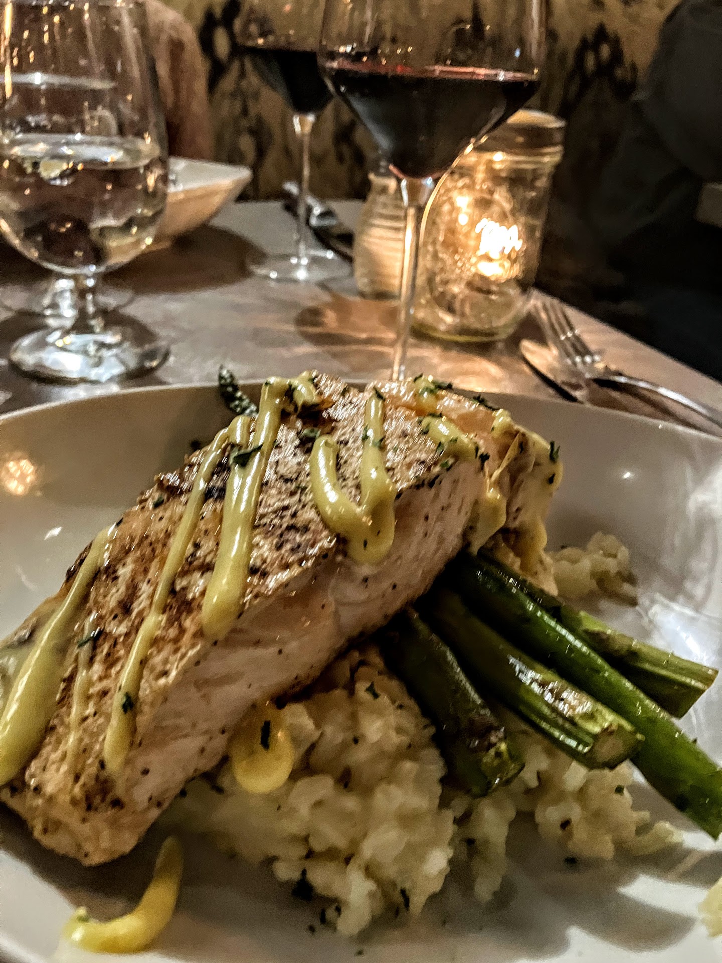 We tried to not let this spoil our meal. We hoped the food would make us for these other inconveniences. For drinks we had the rose’, very good, and the apple mule, not so good, was missing the muddled apples so this tasted like pucker. To start we had the orange sesame crispy cauliflower. It was delicious, perfect crispy breading that didn’t get soggy from the sauce. The sauce was just sweet enough and covered up the cauliflower flavor which delighted my significant other. It was by far the best dish of the night. Next was the Korean street tacos with steak. This left us confused. There was nothing Korean on the plate. The meat wasn't marinated and didn't utilize salt and pepper. the pico was also tasteless and the taco shells were mostly full of tomatoes. We didn't even attempt to finish them after a few bites. Also worth noting at this point its started to rain and 10 mins later started to downpour. We were never given salt and pepper and our server had kind of forgotten about us. The final course had a lot of promise and used high quality ingredients. Sad to say there was a huge seasoning issue again. The scallops were fresh and big. They should have been seared more, on both sides, and needed salt. The risotto was a good texture, there was a good amount of crab and the flavors went together well. But this was also missing basic seasoning.