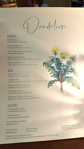 Read moreDandelion offers a welcoming atmosphere that immediately sets a positive tone for your dining experience. The restaurant's ambiance strikes a nice balance between casual and refined, making it comfortable whether you're grabbing a quick bite or settling in for a leisurely meal after a day of exploring.