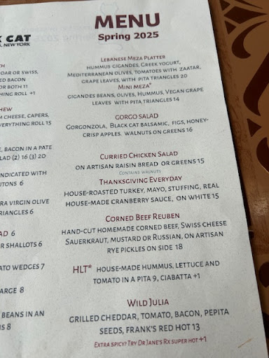 Read moreThe Black Cat Cafe shares the vintage charm of Beekman 1802 and the rest of Sharon Springs. With a relaxing atmosphere featuring vintage tables and chairs, plentiful bistro window seating, and excellent service. As well as offers a surprisingly large and creative breakfast and lunch menu. All gourmet prepared by the owner and chef, who obviously enjoys interacting with his guests, which is extremely rare now days. We had the Wild Julia sandwich along with a bowl of homemade Tuscan bean soup and Orange Blossom Lemonades. All superbly prepared from obviously fresh ingredients. As well as enhanced by their selection of Black Cat balsamic drizzles. Our only regret is having visited Sharon Springs so many times in the past without visiting the Black Cat, assuming it might offer a limited menu and seating, which definitely wasn't the case and won't happen again. If perhaps you've done and wondered the same, definitely...
