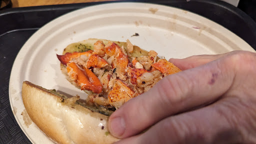 They have a large parking lot out back of their establishment. This place can get pretty busy. I've seen a line all the way up the street on several occasions before .I've had their food on multiple occasions. The fried scallops and shrimp are some of the best and never disappoint. Today while I was here I ordered a lobster roll and the fried scallops portion. My friend ordered hotdogs and french fries.The scallops were delicious as usual. I was a bit surprised by the lobster roll though. It was $23 .It came with mostly minced up lobster and maybe part of a claw on it. For $23 I was expecting alot of large lobster chunks. It was a bit off putting to see it all mostly minced up. It tasted like they sauted the lobster meat on a griddle or something with some butter and a light seasoning. It tasted good. However for $23 I was expecting more lobster. I had a lobster roll the week before at the state fair from another food place. It was only $21 and had huge massive chunks of lobster in it. I had over four claws and so many chunks of meat on it. So I guess with Doug's reputation and how good the scallops and shrimp are .I was expecting a bit more from them. The hotdog was good and the French fries were homemade which was nice. I will definitely be back. The scallops and shrimp are always amazing. I don't think I will be getting a lobster roll again from them though. I saw another lobster roll come out that another customer had ordered. It looked the same as mine, all minced up. This made the roll fall apart and the meat fall out while...