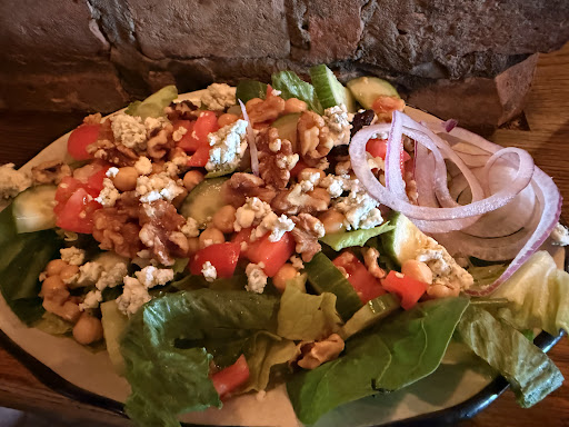 This pub seems to be a go-to spot for libations and classic bar fare—perfect for those looking to unwind with comfort food and a drink. We opted for a lighter option, ordering salads instead of the heavier menu items. The greens and vegetables were notably fresh, which we appreciated. However, the chicken left something to be desired. It appeared to be pre-cooked and reheated, with a texture that made it tough to cut and chew. The Southwest salad in particular lacked the expected fajita-style flavor; the chicken was plain and unseasoned, which fell short of what the dish name suggests.