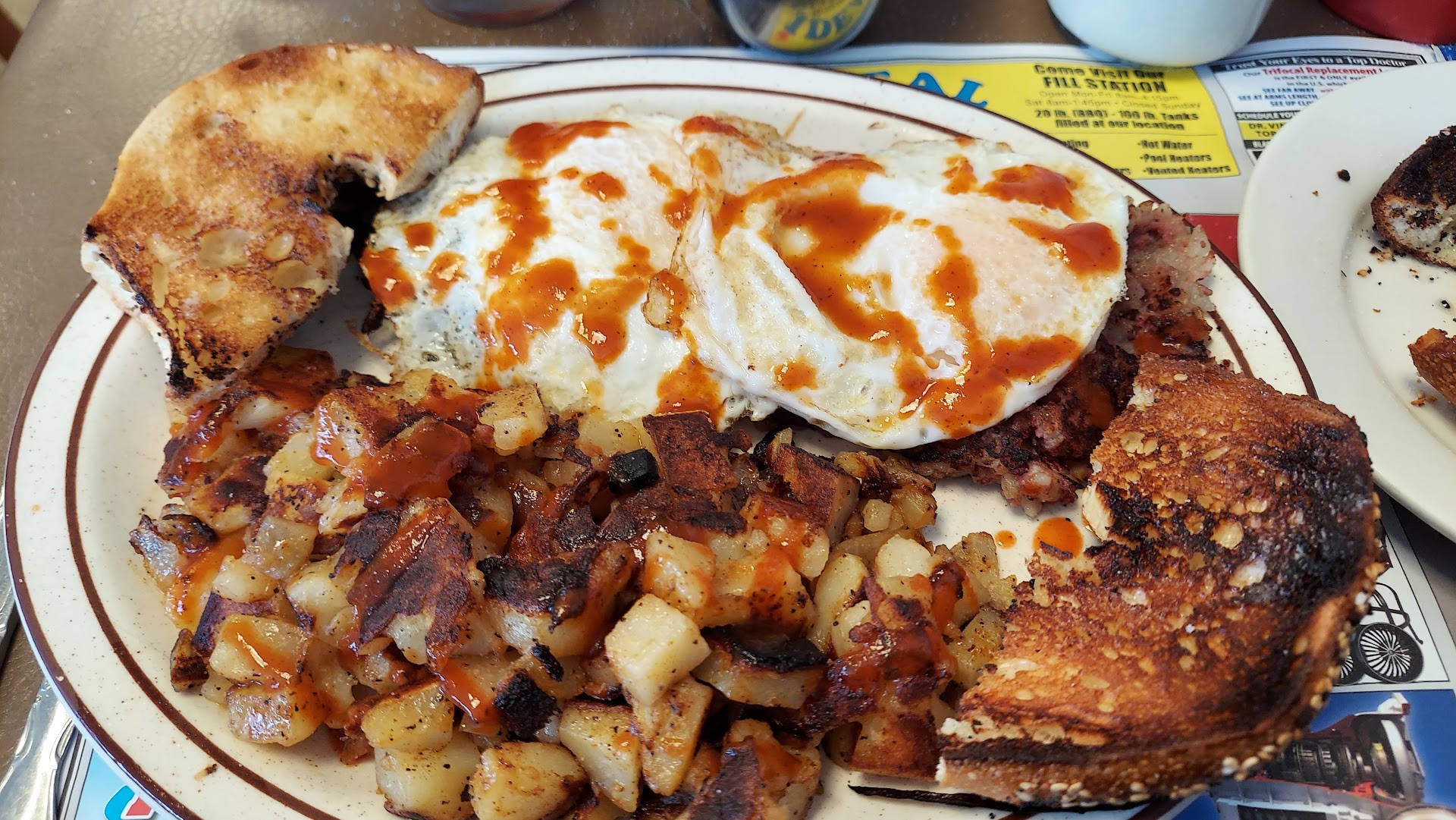 Unbelievable?? My man has been dying to go here for the 2 years we’ve been living in the area and I was WRONGFULLY HESITANT because it doesn’t look like all too much from the outside- first of all, when you step in you feel like you’re home. Incredibly friendly staff, obviously daily regulars, the hum of passing trains, and wide open windows that bathe the place in sun takes the stress off you immediately. We went for two breakfast specials and I can confidently say that I’ve never had such a consistent breakfast. “I always complain and I don’t have a complaint, this is insane.” I said mid meal. Perfectly cooked over medium eggs, lightly charred hash browns, no overabundance of any oil or under abundance of flavor. The coffee was perfect, not bitter, and the pancakes fluffy beyond belief and huge. I could have easily done that whole breakfast 3x over, with that perfect sense of fullness after. This is definitely our breakfast spot from now on....