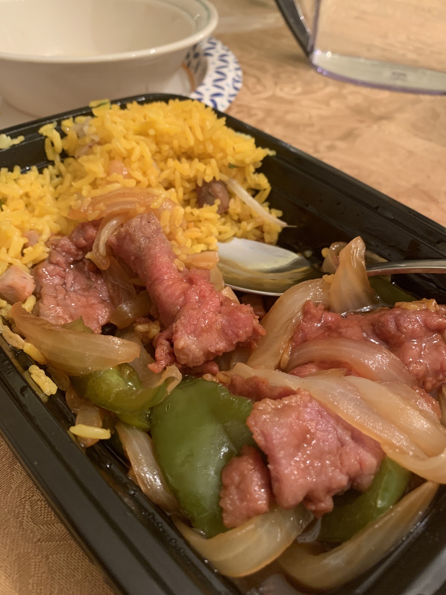 I ordered the Sesame Chicken that came with white rice for a little over $16 (usually the platters come with a can of soda—at least they do in NYC).