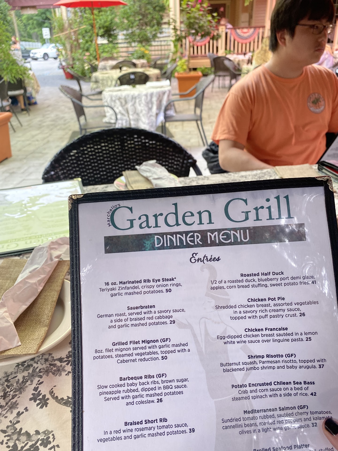Last night my husband and I and another couple celebrated his birthday at the Garden Grill. It was pretty busy and our server Brandon told us up front that there was a bit of lag time on food service .... our drinks and appetizers came out promptly enough so all was good - and Brandon was an absolute sweetheart. Our dinners came out eventually-a little slow but not terribly bad considering the crowd size. Food was delicious except my friends steak was well done in lieu of medium rare- Brandon replaced it speedy quick with a perfectly cooked steak. Hereās where the evening got interesting. There was a large group of heavy drinkers sitting behind us who repeatedly walked past our table and through the outside area unmasked- we did not see any indication that they were asked to adhere to rules of wearing a mask while walking around.At one point a very drunk Bob was standing 2 feet behind me shouting to his tablemates unmasked. My friend asked him to put his mask on and take a few steps away from our table and Bob unleashed on us cursing, threatening, disgusting mouth tirade. As my husband stood up to shut this total loser down Bobās friend intervened and whisked him away- still cursing, threatening and spitting. The āsecurityā guard came over and basically did nothing. Iāve 2 major issues here.1) Why is GG NOT enforcing mask wearing when on the move- as a paying customer we should NOT be the ones to intervene. And 2) Bob was clearly very drunk and should have been cut off long before this incident- GG needs to do a better job of monitoring their customers. With all this being said Iām really not sure if we would go back- maybe after covid and we can eat inside where the customers are hopefully held to a...