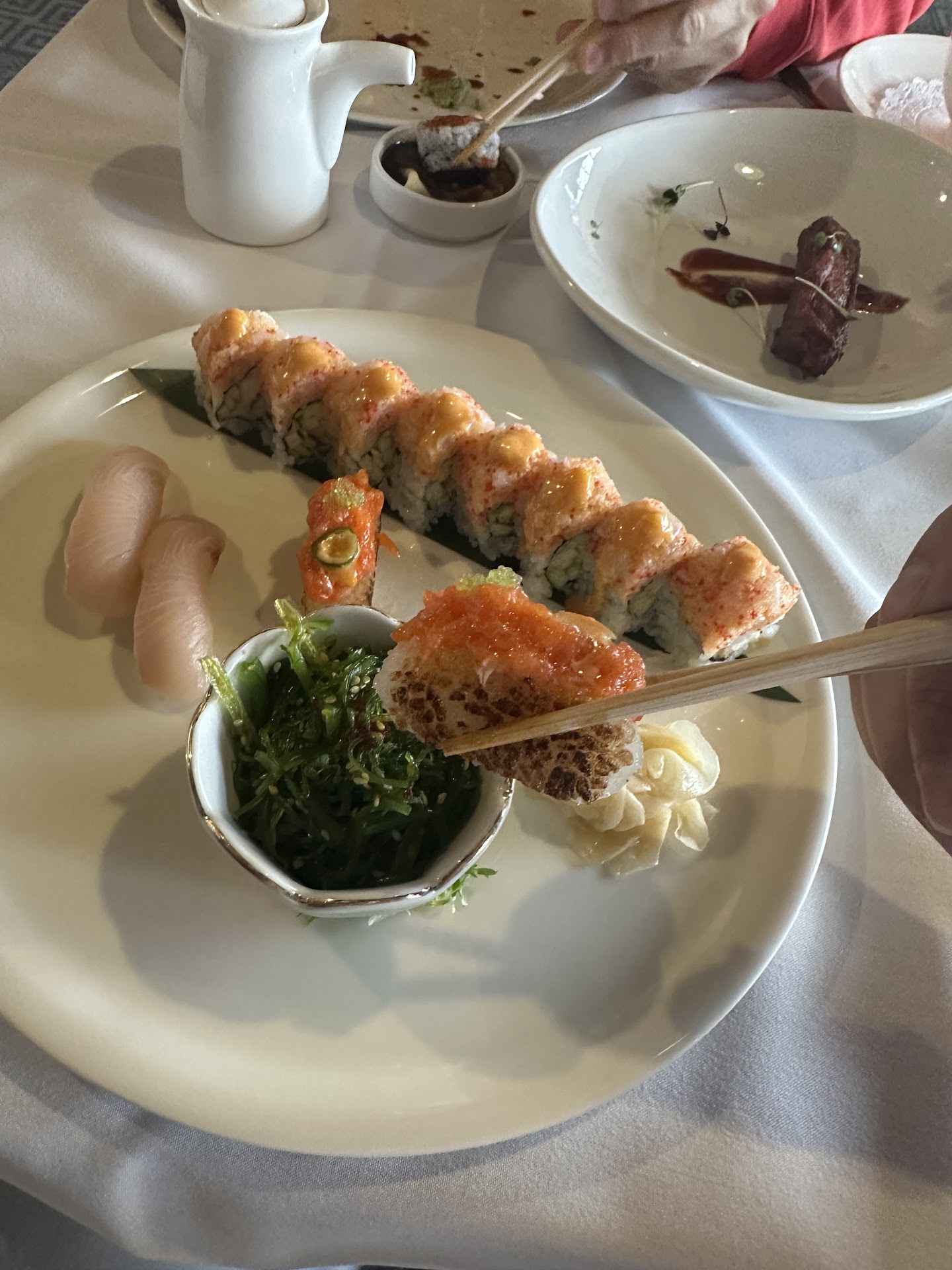 The sushi we ordered was alarmingly subpar—the fish tasted noticeably aged, lacked freshness, and had an off-putting aroma that raised concerns about its quality. Presentation and portion size did little to justify the premium pricing, and overall, the meal failed to deliver even the basic expectations for a restaurant of this caliber.