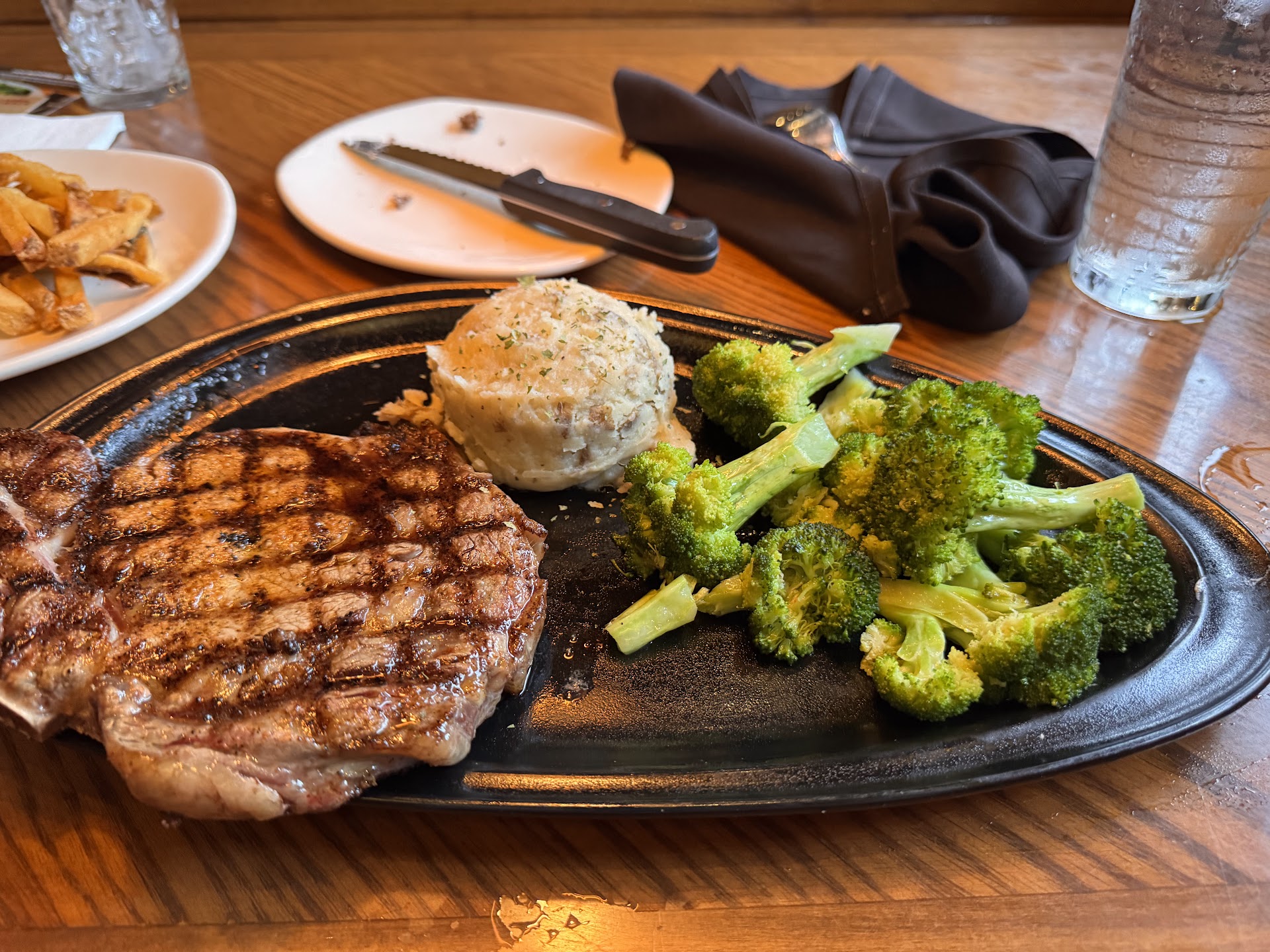Read moreWe decide to eat at the bar. The restaurant was slow. My husband and I were the only people at the bar eating. An older man came in later for a beer. The bartender greeted us and made us drinks. The was quite a few servers standing around. One male server was focus on his laptop checking his fantasy game. We later over hear he could possibly win 13,000 dollars. The French onion soup came out immediately after we order. The cheese was barely melted on the soup. The side salads came shortly after which was ok but my husband's salad was three times the size of mine. No big deal we just laughed about it. My husband order the bourbon steak med rare. When the steak came out it was gray in color and the fat on the steak was not seared. I ordered my steak med well (knowing it would come out med) instead it came out rare. The bartender never came over to check. I needed to flag down the fantasy football server who checking his stats to request a refire on my steak. He sent the manager over who apologize and took my steak back. My husband chose to just keep his steak. My husband finished his steak before I got mine back. The manager bought out my steak but neither bartender or manager checked back. Worst...