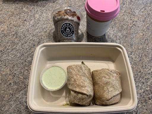 Waffles are delicious, they came with a generous amount of butter and syrup on the side. My mom said the sausage in her breakfast sandwich was "so spicy", but she thinks water is spicy, she gave it to her friend at work who loved it. No comment on the coffee yet but I'm sure it's fine, it's coffee, the frozen vanilla bean coffee is DELICIOUS. Tastes like I'm drinking a vanilla milkshake, I got it with caramel, oat milk and and an espresso shot.
