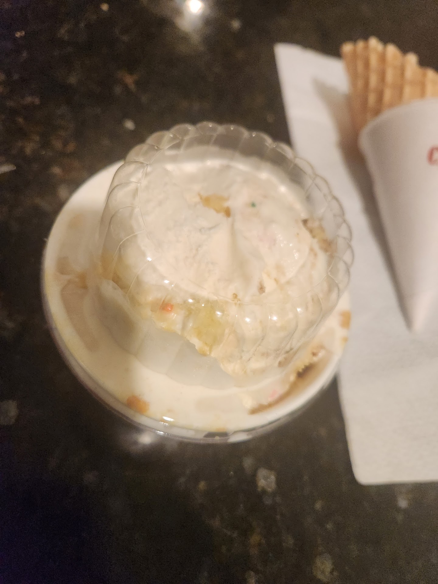 Read moreI have been visiting this Coldstone creamery in Baldwin for many years but lately the staff has been changing and the new hires just dont care about the Pandemic nor do they take pride in appearance. The staff are young and not professional. Some wear mask at times while others dont care too. I visited coldstone today and I found a hair in my love it cup. 2nd time in 2 weeks. The 1st time was 2 weeks ago when I payed for a gallon of chocolate devotion and when I got home the gallon was not even full and a hair was found. The young employees go unsupervised 1 may be wearing a mask and the other does not but they expect customers to wear a mask when entering. One was even cleaning the glass doors and the store got crowded he stopped never washed his hands and started serving customers. This place needs either new owners or new manager and to say the very least better supervision in the evenings and weekends. If changes do not come soon I can see this place closing down real soon. You can count me and my family out from ever visiting...