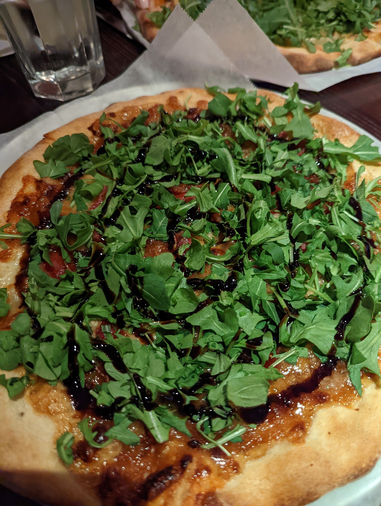 The food was absolutely delicious. We each had a salad to start, an individual pizza for the main entrée, and then split a pistachio ganache dessert. The cocktail list was also fun and enjoyable.