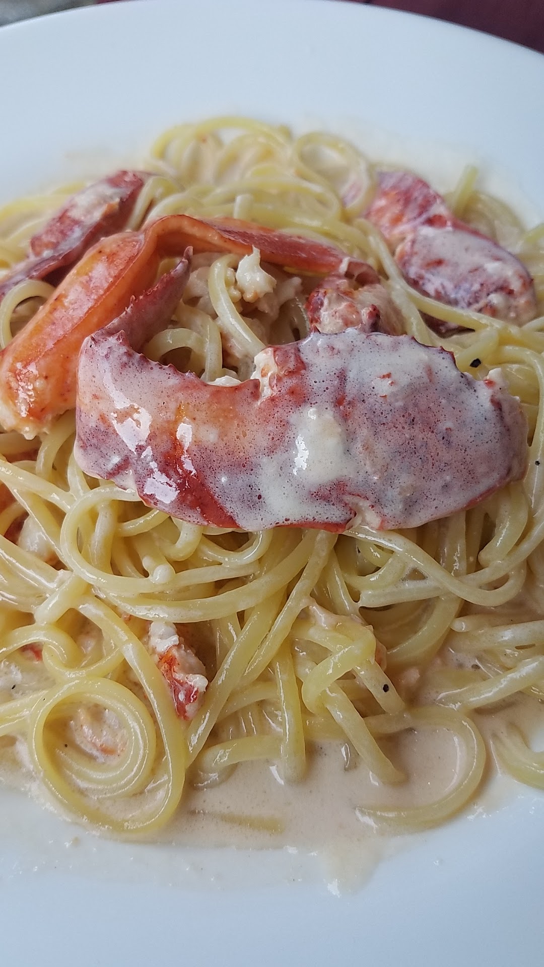 My seafood pasta dish was sad... overcooked pasta with mixed seafood in a thick, bland a red sauce. (I'm home now, still waiting to be asked whether my entrée was okay.)