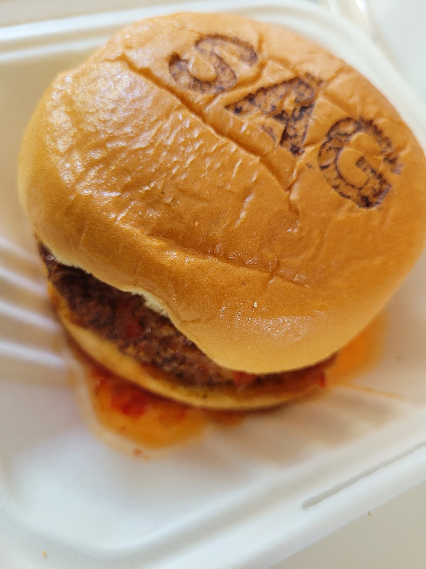 During my second visit, I tried the double smash burger and sweet potato fries. The burger was juicy but didn't quite meet the traditional "smash" expectations. Smash burgers are usually pressed thin and cooked longer on the griddle to develop a crust. This burger felt more like a thin patty rather than a true smash burger. It tasted good but again lacked sufficient seasoning. The bun, branded with "Sag," added a nice touch of presentation, but it wasn't toasted, which would have provided a better texture and prevented sogginess. The sweet potato fries were better seasoned than the regular fries but still clumped together and were lukewarm. I just want hot fries.
