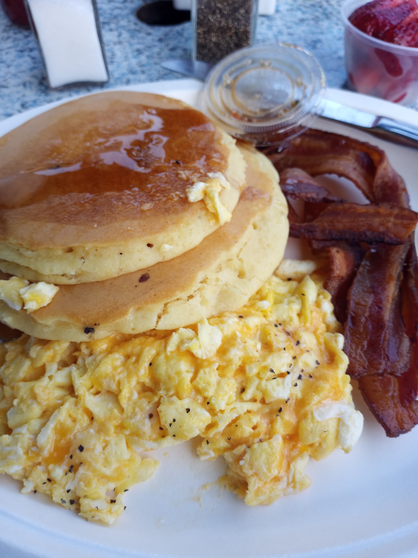 Read moreOh wow. Where to begin? I should say that I was the patient one at our table. Holiday weekend, gonna take a while to get our food. Lots of friends in the restaurant world. "Just have a little patience," I told my table. Then we saw a table that sat down 15 minutes after we did get their food. The bros that sat down 20+ minutes before we did? They got their food before we saw any of ours. And when the food came. The order of bacon? Missing. The home fries? Missing. An order of eggs? Missing. That's a lot of absent food for a 5-top. And we should not need to remind them what we ordered. Best part? The fruit salad that was chock full...