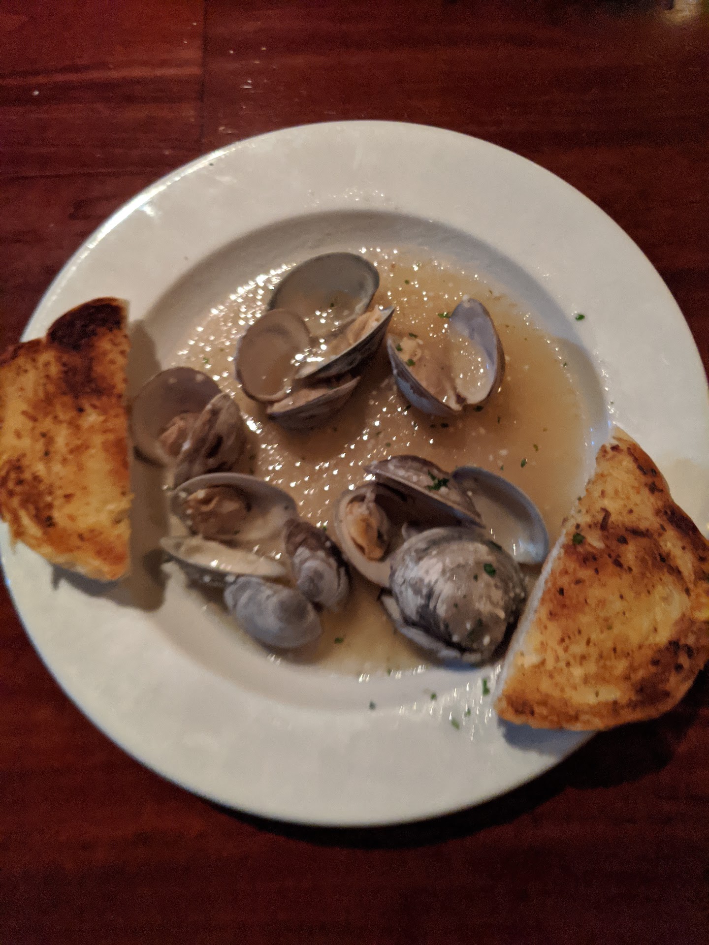 Our order consisted of the baked clam dip which was hot, moist and delicious. They clams were in a nice elongated baking dish, covered with cheese and a generous portion of chips.
