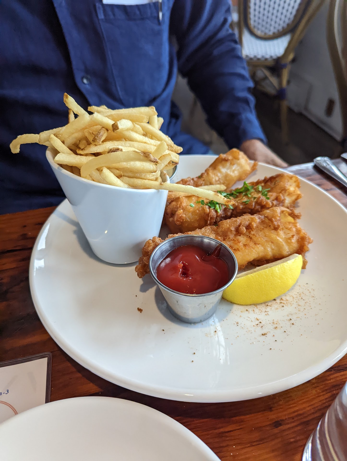 Fish and chips: Undercooked, under seasoned, small portion. Shoestring fries were meh. Tartar sauce was good.