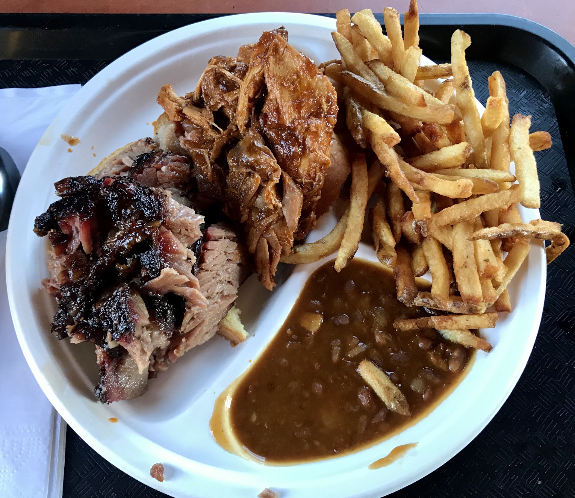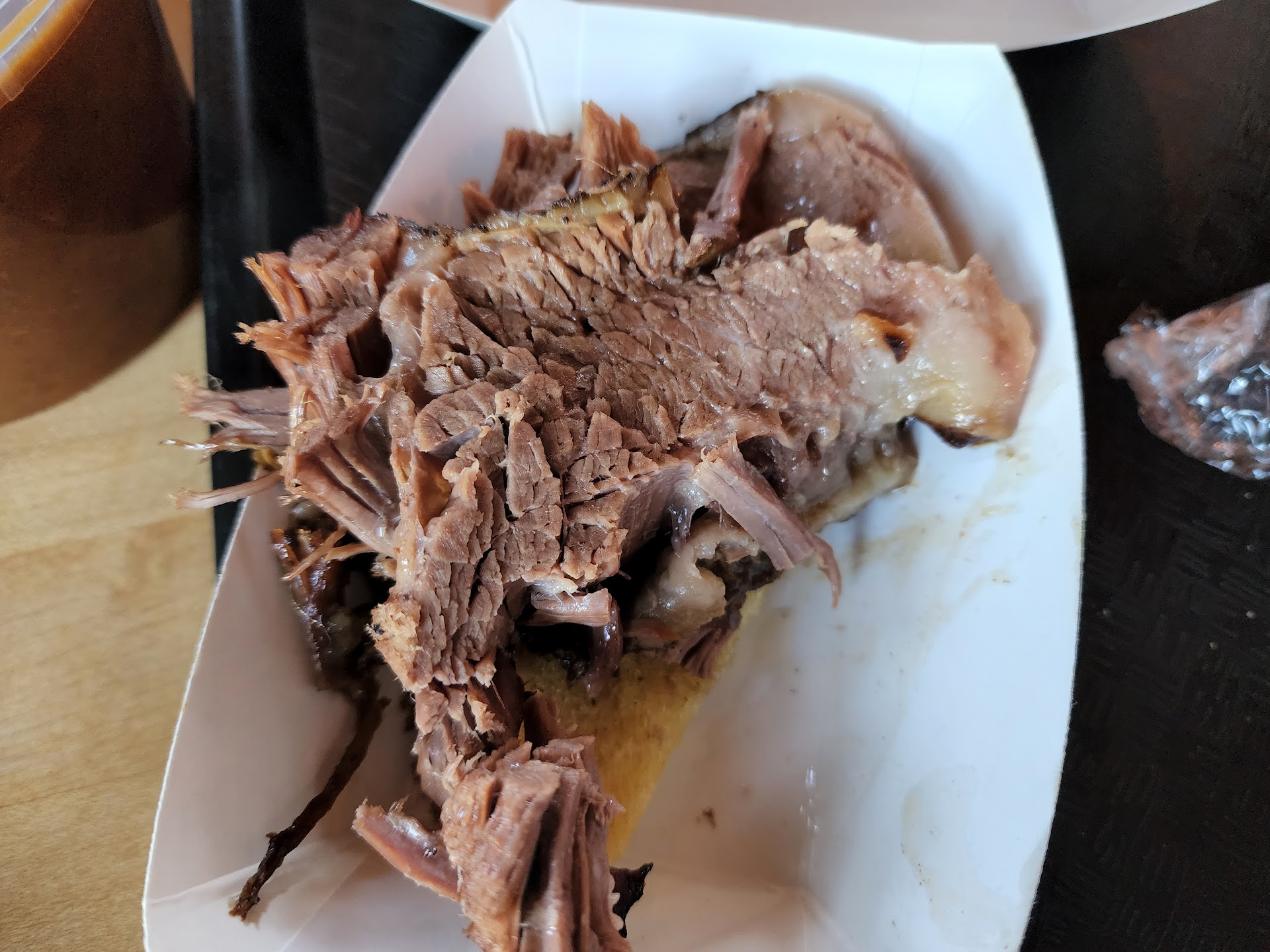 We added a quarter of a pound of brisket and I love that they ask you if you want it dry wet or mixed. Dry means no fat wet means lots of fat. We got it wet because there's something about the fat that just adds so much flavor. My daughter's friend did not like it but I was proud of her for trying it lol.