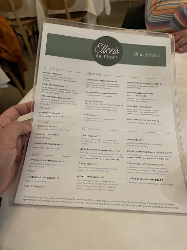 Read moreWhere do I begin....when first walking into Ellen’s on Front you are greeted with a magnificent and elegant portrait of a women hanging above the simple yet elegantly decorated bar. The women in this portrait stares back at you and gives you the feeling of comfort and warmth. Greeting you with her eyes that you are going to eat some of the best cuisine today. The hostess greeted us gently and so polite asking if we were ready to be taken to our table. As she guided us to a window side seat facing the scenic and famous street of Main Street Greenport, you take in the cleanliness of the entire restaurant. Not a crumb to be seen it was fantastic. Especially during times like now with COVID spreading throughout the nation. I felt safe and secure the entire meal. When it comes to the food the women in the portrait did not let me down. I had the daily special of the swordfish steak on a fresh bun with arugula and herbed mayo. My first bite was divine and the next ones were heavenly. What ever chef is in back just WOW! My wife got the lobster roll and I have never seen her tackle a meal so fast in all my life with her (fifteen glorious years). Also as suggested by our amazing waitress ironically named Ellen, so crazy I know! We also ordered the short rib grilled cheese sandwich. Highly recommend to anyone who enjoys food as much as I do. The thing is a mash up of A-M-A-Z-I-N-G-N-E-S-S. As we neared the last bites of our meal I began to sadden as the amazing feast we were served was coming to an end. I enjoyed every moment of our time at Ellen’s on Front. The staff was excellent, everything was clean, the restaurant knew what it was doing. As I left the restaurant I looked back up at the women in the portrait and said you were not wrong I WILL BE BACK...