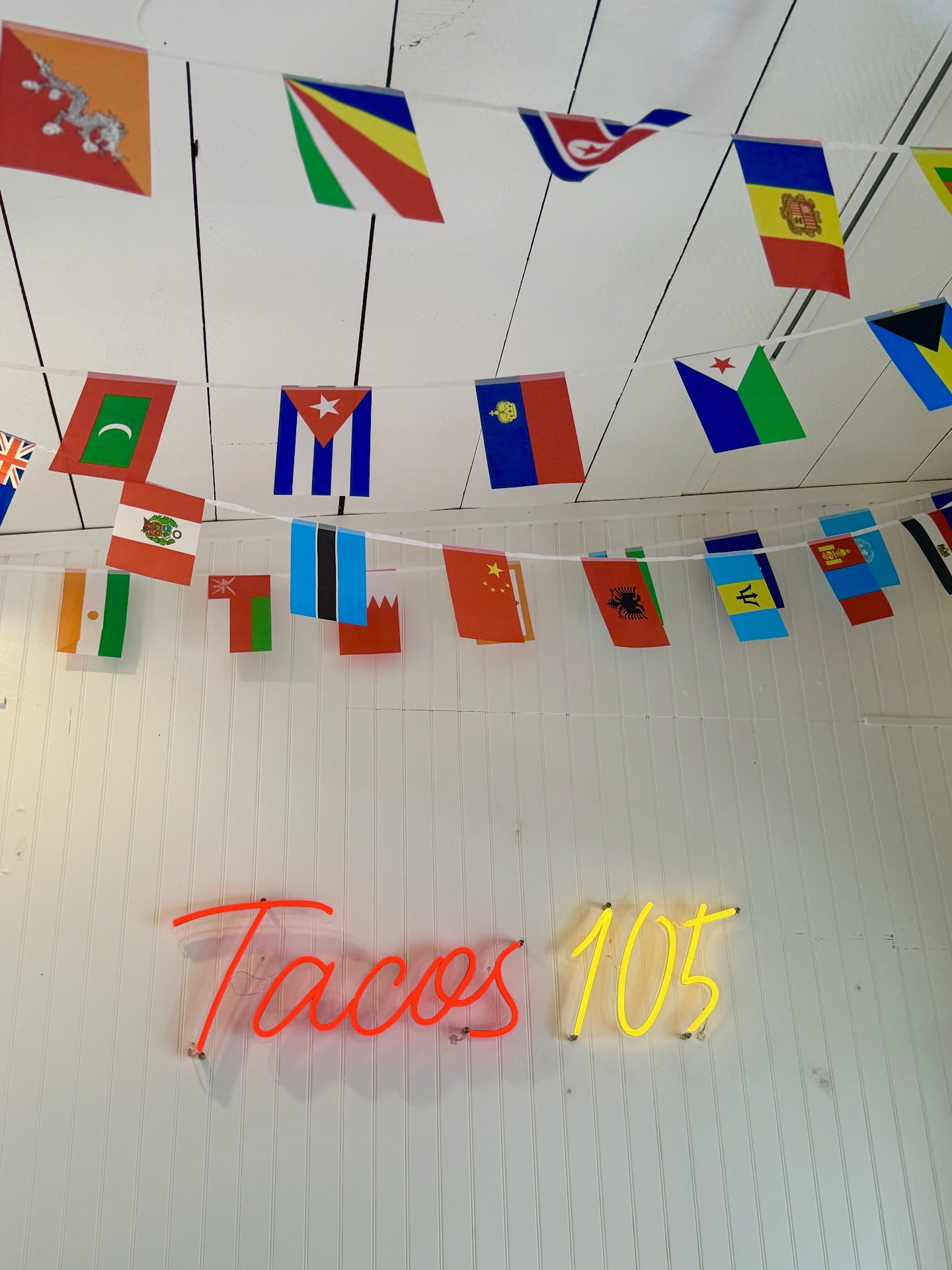 Read moreI’m sorry I didn’t photograph my Greek Salad Taco - it was delivered looking like a work of art! I never have ordered any Greek Salad with chicken, only my wife enjoys it that way. This Greek Salad Taco, however, came with pulled-chicken and the combination was INCREDIBLE. Hands down, the best Taco I’ve ever eaten, anywhere, in any Town, County, State or Country!!! We visit the Clovis winery often enough and this place is very close. Our new routine will now include bringing our friends and family to The Taco 105 every visit we make to the winery. There are so many other ‘Country-Specific Taco’ choices on the menu that I can’t wait to try other specialties!!! On the drinks menu I had the Strawberry Smoothie and it was a perfect compliment to the Greek Salad Taco. We sat outdoors in perfect 75degree noon time temperature and the Mexican language music transports you to another place and time -...