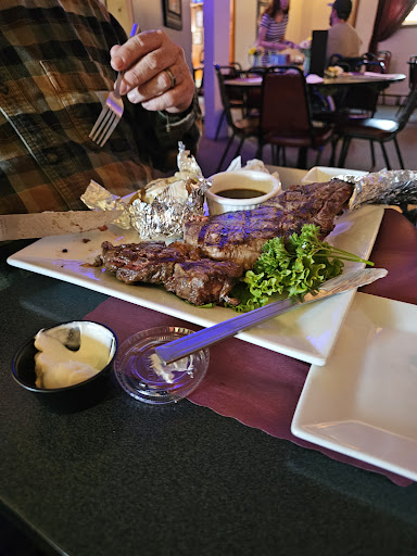 Read moreThis place is a nice little gem tucked outside of a small town, a great atmosphere with a nice size bar when you first walk in. We made reservations. I dont believe you have to, but I would suggest it just in case. We were seated immediately even though we were about 15 min early, and our waitress came over immediately with menus and took our drink order. I asked about the specials, which she listed off and hubs chose the tomahawk steak, baked potato w sour cream (no vegetables are offered) but u do get choice of soup or salad, we both chose frolench onion soup, which was ok, It comes with rye bread chunks in the soup which I personally don't care for but my hubs did, so that is juat a matter of preference. now that I know I wouldn't order it again. I ordered the tenderloin and lobstertail with baked potato with a side of sour cream. she asked if we would like bread rolls, we said yes, unfortunately though we never rcvd them, My husb order came and was cooked perfectly, baked potato was hot and he rcvd his sour cream. My steak was again cooked perfectly, baked potato was done and hit, but never rcvd any sour cream that I had asked for, the lobster tail was such a huge disappointment, was so over seasoned with I think old bay seasoning that it was barely edible, so salty and overpowering, I tasted no lobster at all, which was really only about 2 bites anyways. Just going forward, I will have to avoid the lobster or ask for no seasoning. overall, we had a good experience and will be back. they did point out the menu prices were not correct that new menus...
