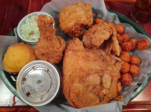 Sunday special: fried chicken, comes with choice of potato, beans, coleslaw and a cornbread muffin. I’ve never had anything better! The fried chicken is by far the best I’ve ever tasted, I chose sweet potato tator tots, and I’ve never had sweet potato anything better than these.