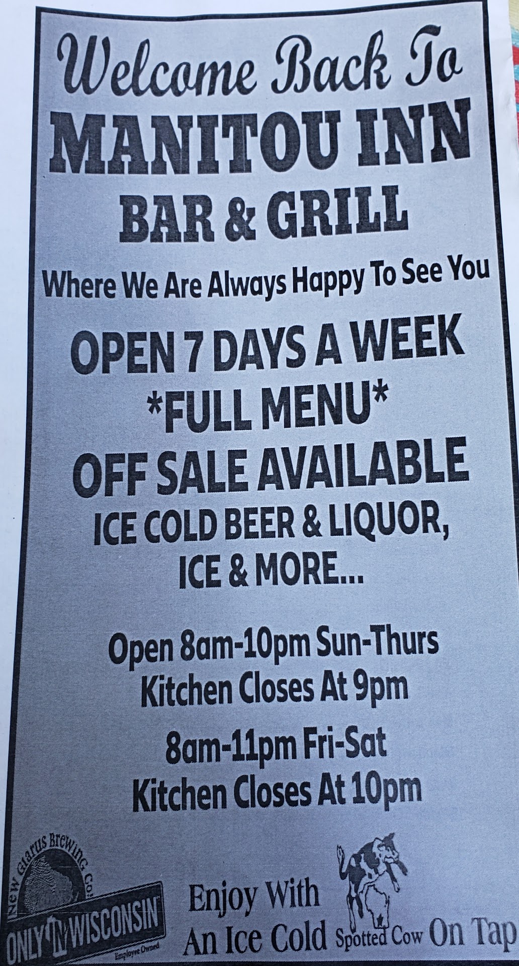 Read moreEverything you'd expect from a roadside WI tavern, solid beer selection, root beer on tap, and a wider variety of menu than most. Breakfast served until 8p.m! French dip was real roast beef, not pressed meat. Taco salad was large and tasty shell. Not a lot of bars/grills south of Superior down to Danbury so fuel up here. Friendly couple running the place and of the 3 booths, one is occupied by masked skeletons for covid distancing. we chose patio seating and we're glad we pulled into this classic Up North bar and grill. Campers note the location is right near Pattison state park entrance which boasts WI' s highest waterfall, worth...