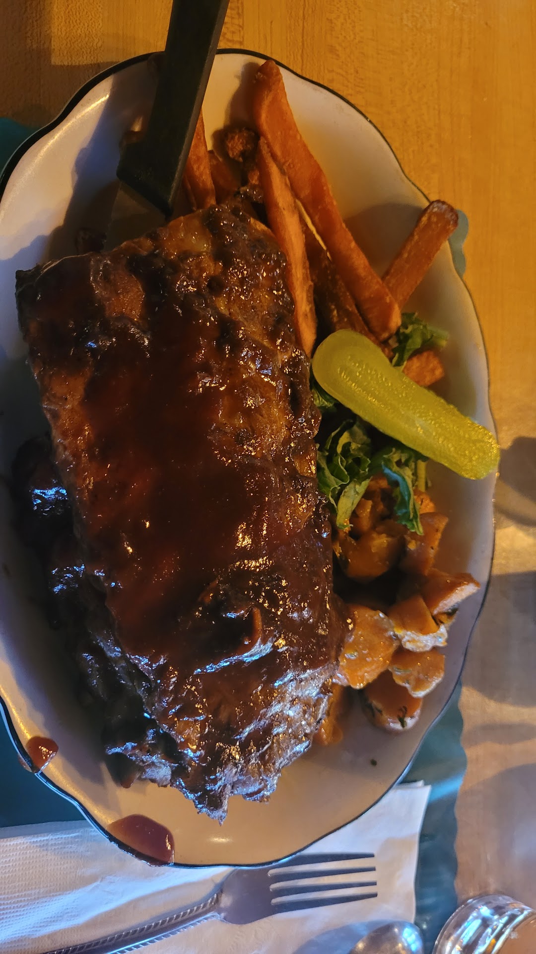 Pros: Homemade cheesecake is out of this world, seriously. One of the best I've ever had. It's less "sticky" than a lot of other cheesecake, melts in your mouth, and the cranberry walnut is just tart & savory enough without overpowering the sweetness. I dont eat meatballs but they were apparently very good. They offer sweet potato fries as a side which, for me, is a big plus. Their tartar sauce seemed to be homemade to a degree, as it had bigger relish chunks than I was used to. Was tasty. Could be a con for some, ymmv.