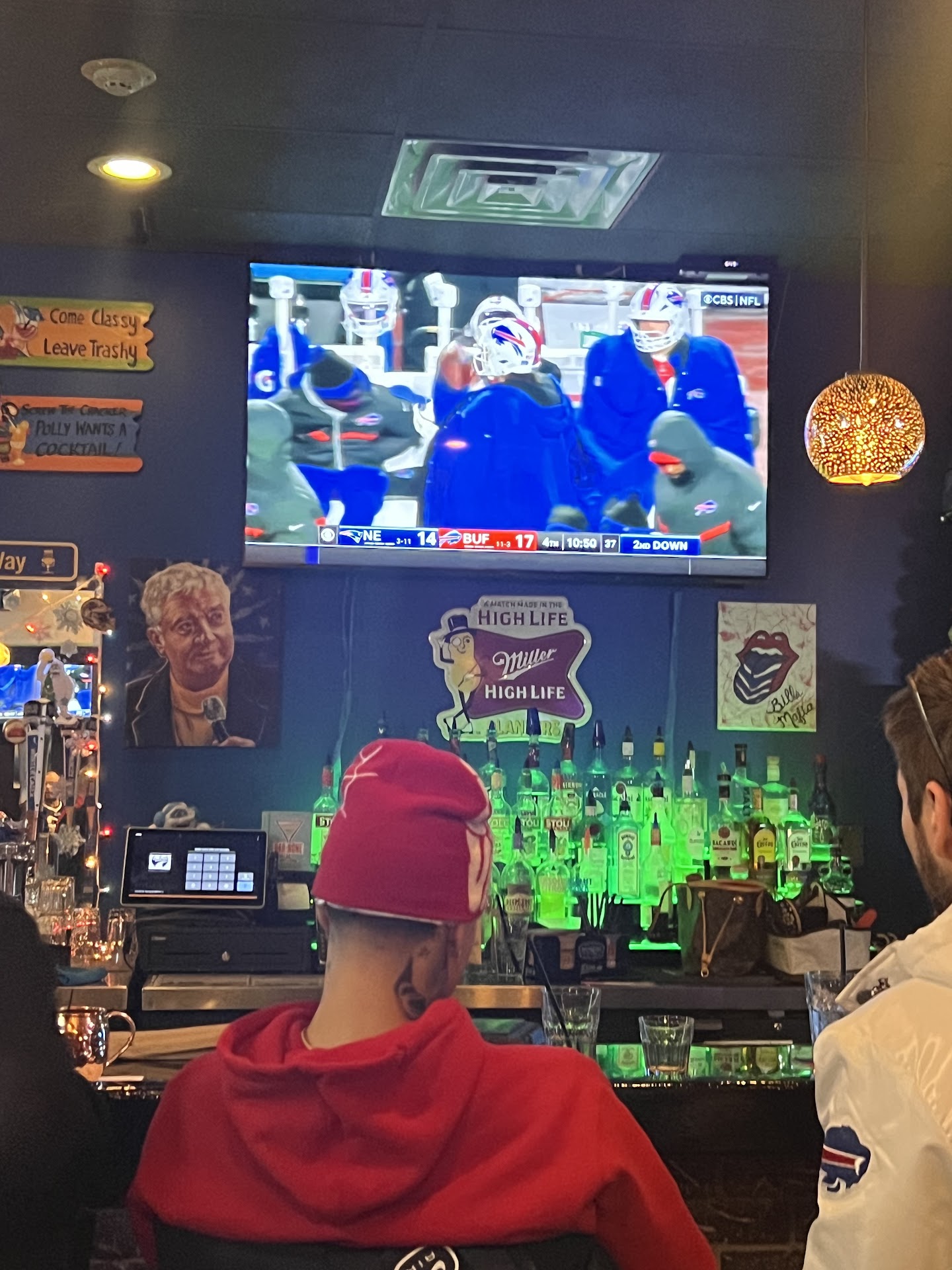 We went to this bar to watch the Bills game yesterday and I will say that I will NOT recommend this bar to anyone who is black or a person of color. First of all when we (me and boyfriend) had arrived were already getting a lot of stares and the issues began there, there was more than 5 servers but we didn’t get someone to come serve us for 20 minutes. Second of all the server was very demeaning and she was talking to us as if we were children, she wasn’t that busy but still took a long time to give a simple service. This server was blonde but also had some black hair and was on the older side. Thirdly on the food, i thought bar food was supposed to be good but no the Cajun wings were a 2/10 with there being no seasonings at all the Cajun tasted like nothing (maybe it was the non salted ones??) the wing barely had any flavor, their blue cheese isn’t good and the ranch was really weak. My last point was that the server checked on us once the whole time right after we got our food and we were ready to leave for a long time and I even asked another young server (black hair) if we could pay and she said we could only pay with our server and the fact that she didn’t try to help or call her over showed how much they care for their "customers" and then after our server came she asked if we were ready to pay which we said yes to and she printed the receipt and once again dismissed us to go take care of another table and made it so we had to wait even further. This place was not welcoming at all and if this review is deleted I will make another one. It’s just crazy that there’s still so much discrimination, prejudice at an establishment… have you never seen black people come to Tonawanda? This is my true experience at this...
