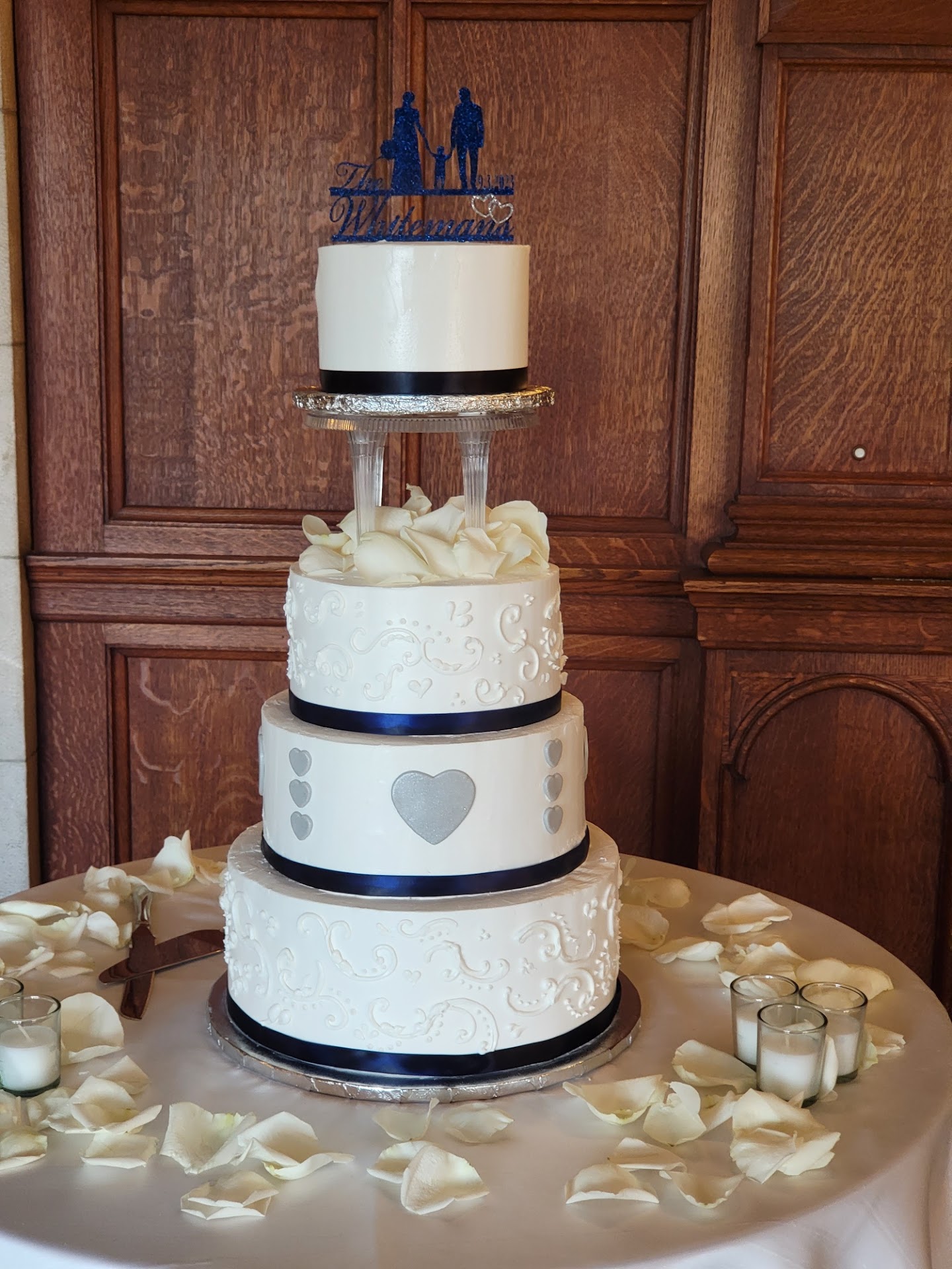 Where do I begin? My husband and I reached out to Caramiciās Bakery for our wedding cake! We have known Diane Serra for years. We live in MA and really hoped we would be able to work something out where she would be the one to create our dream wedding cake! Once we got engaged and picked a date, we reached out to start to figure out if this would even be possible. Dianeās immediate response was āof course we can, letās start planning!ā My husband and I were so excited about this and couldnāt wait to bring our ideas to life! Diane was so amazing! We did multiple zoom calls (due to distance) and she even drew up several different cake styles for us and walked us through what each would look like! She was extremely responsive and never complained about all the different changes or additions I had (and I had ALOT). As an anxious bride who wanted everything to be perfect, Diane was extremely patient and made me feel comfortable that our cake was in the best hands!!