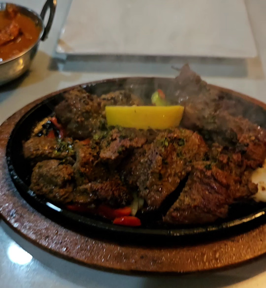 We ordered the beef boti, chicken tikka masala, and naan. The naan was nicely crisped. The beef boti was ordered spicy and it did not disappoint. I loved seeing the sizzling plate for the beef boti despite the guy bringing our the plate burning his fingers and jumping in the air. The meat was tender and flavorful. Same with the chicken tikka masala.