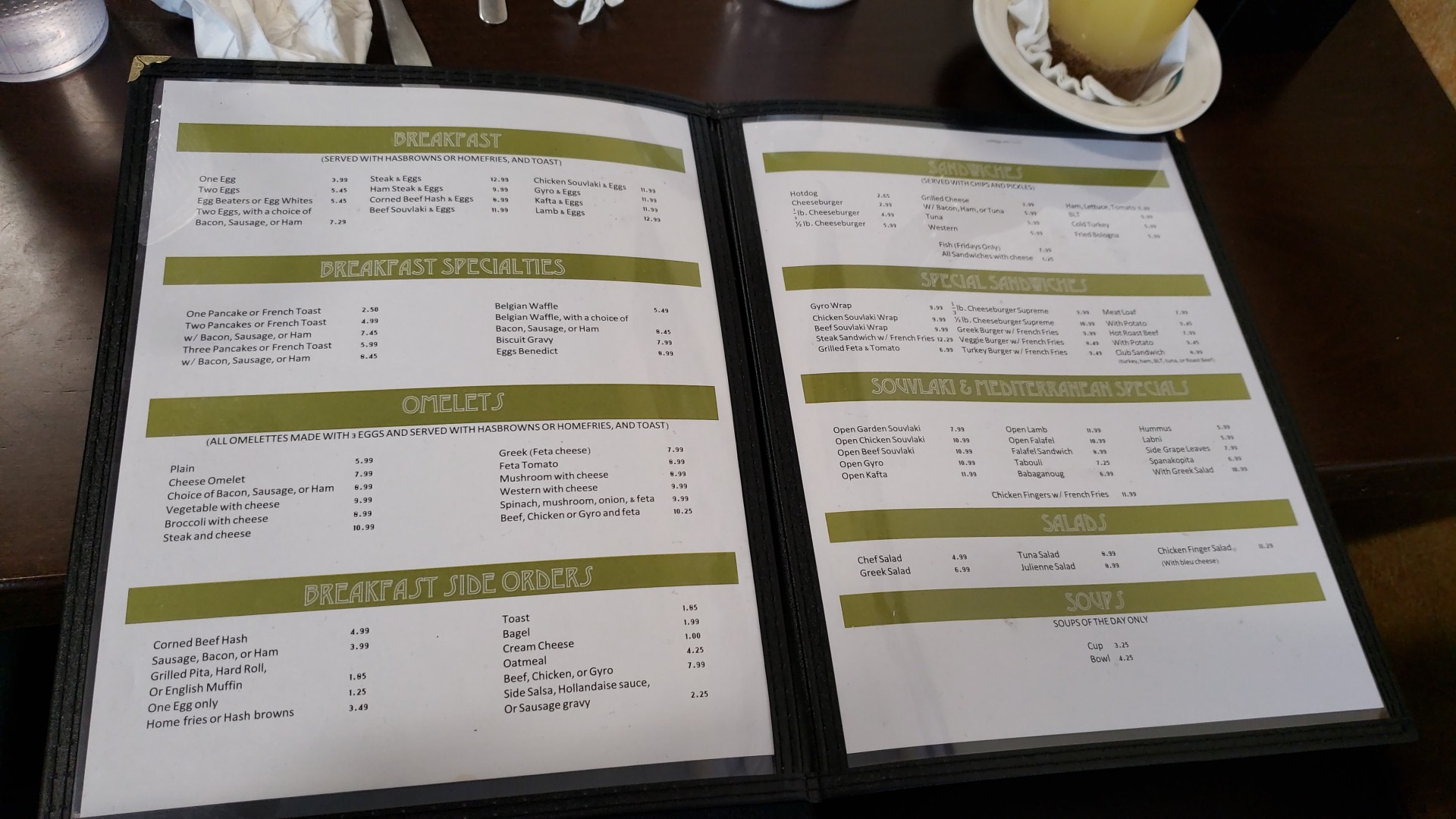 Read moreThe food here was skimpy and not authentic tasting. The "Greek Salad" was described as an entree. It came to me like a plate of some romaine lettuce that looked old, a half a plum tomato sliced into four tiny pieces, two pitted black olives and a sprinkling of feta cheese. A Greek salad should be cucumbers, tomatoes, bell peppers, olives, pepperoncini, grape leaves and Feta chunks. Please learn this recipe and then offer it up as a "Greek Salad". I also had an order of lamb souvlaki that was tiny morsels of what could legitimately have been a piece and a half of souvlaki in any other authentic Greek restaurant. The lamb was not seasoned and I was glad to leave. The proprietors took turns asking me how my meal was in front of their regular customers, so I refrained from being honest, as to not embarrass them or their clients. There is much room for improvement and if they were to hees their diners advice, they could turn it around. For me it was a...