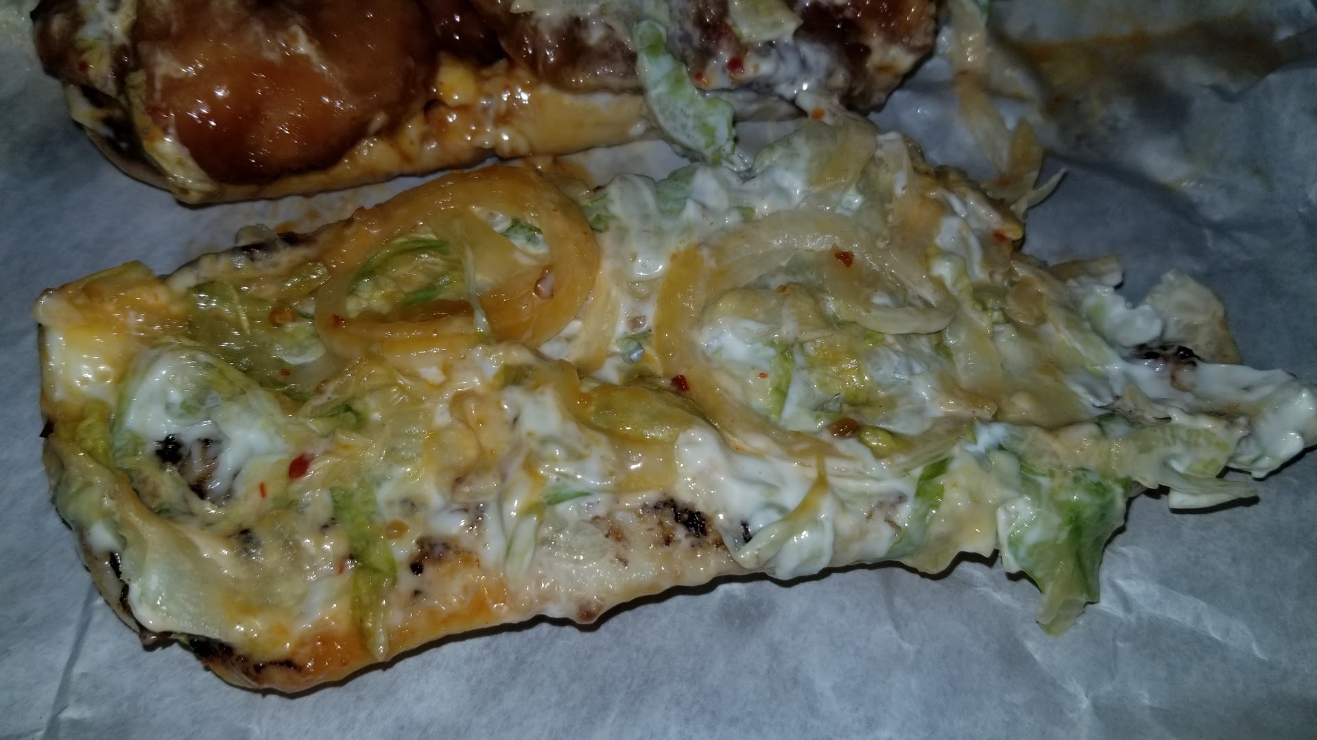 This was the most disgusting chicken finger sub I've ever had. The main problem was the overwhelming amount of mayo on it. The second picture shows the amount I scooped off with a spoon while trying to eat it. The roll was soaked and mushy, and the sub was falling apart as globs of mayo fell out of it. The first picture shows the second half that I just couldn't eat, both sides of the roll loaded with mayo.