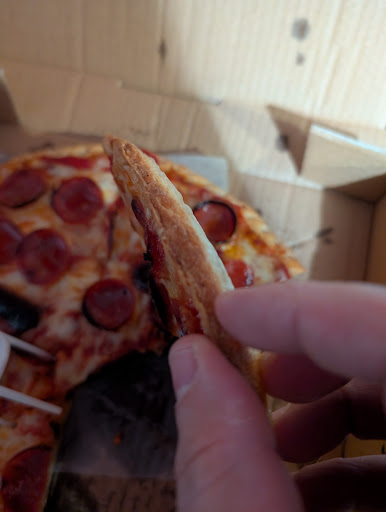 When I got home 10 minutes later the pizza was lukewarm and the crust was very thin and not what else have experienced from them in the past.