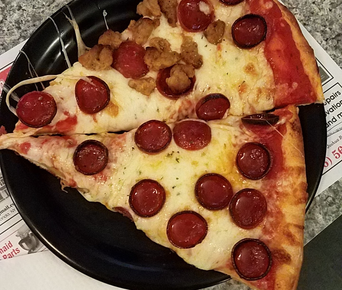 Read moreWestern New York is a hot spot for numerous pizza and wing joints, litteraly can find 5 plus on any given busy street. Growing up in the Southtown in hamburg, there's ur great locations there and the farther north u go, the more options u have. Moving to cheektowaga within the last year, I've only ever gone to a couple places so far and not really looked for good pizza or wings. So I had a vacation weekend recently and with my friend and I looking for some really good pizza, we thought we would try this place as the pics and reviews seemed legit. We took out, but let's just say as i walked in to grab my order, u can just tell by the atmosphere and the workers that they have been doing this for a long time and seem to have their way of running their place down to a science almost, it screams "small time pizza place that delivers the goods" I ordered a large cheese with a few items and 20 wings. First off, the weight of these two items...... i felt like I was carrying a sheet and bucket of wings. Absolutely massive in size, they didn't skimp on anything. The pizza was gorgeous(yea I said it) loaded with plenty of toppings and a super nice thick crust that had a bit of crunch and a bit of doughyness to it. It had minimal flop but with so much toppings loaded on and tons of perfect cheese, it's gonna happen. Flavor was spot on, fresh ingredients for sure, sauce was tangy and sweet but intense on seasoning flavors as well in a good way. Great pizza. The wings were super big, plump, loaded with sauce beyond belief which is great, extra crispy and we got ten bbq charred and they were perfectly charred on the grill. I cannot say enough about this place, u guys definitely have a life long customer in me now for sure. And the price for what we got was well worth it, no regrets or anything on that front. Keep it up guys, and if your in the area, please give them a try, u...