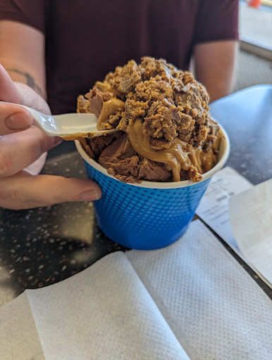 Ā Ā Ā Read moreService is very friendly, place is bright and clean with Neapolitan colors, and they serve free popcorn! At first I didn't think they had many flavors there,but there are plenty, and they are so delicious. We went with my Grandma,Dad,sister and brother. I'm more of a chocolate girl, so the superhero flavored one (Cherry bubblegum,lemon, and blue raspberry) that my brother got looked gross to me, but it was actually pretty good. So,in short,great service,nice and clean place,free popcorn,lighted relaxing patio right by the bike path, and delicious ice cream! Come here, it is...