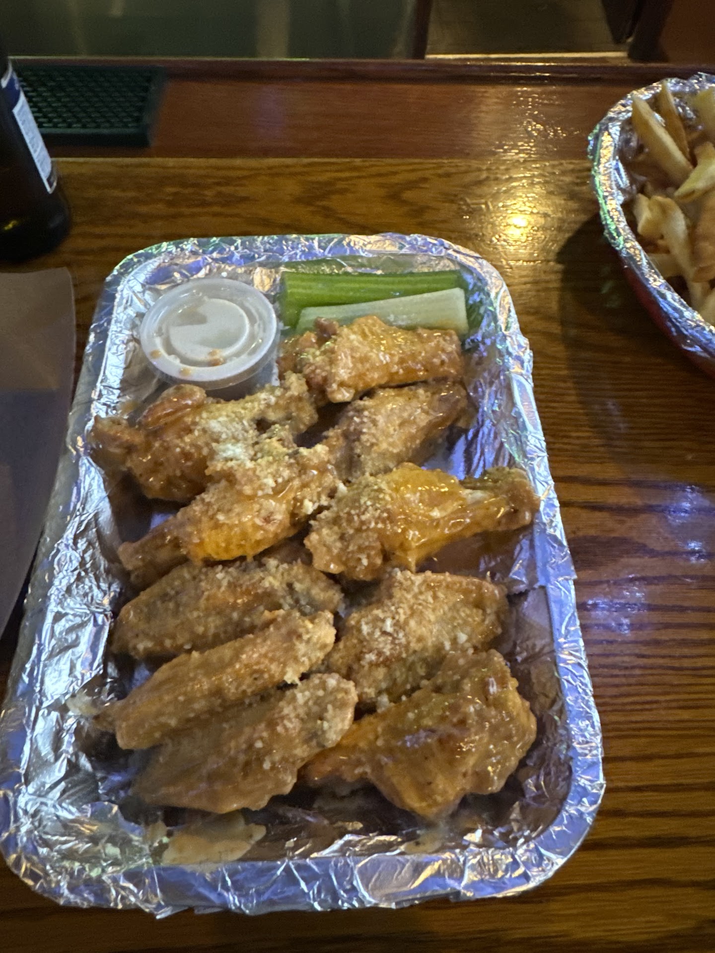 Read moreWe came into a quiet bar, which got quite noisy when a couple of groups came in. I would recommend going in the back and getting a table. The menu is very limited. The wings were decent sized. Their hot isn't really super hot. At .50 a wing, though it sure beats paying 15 bucks for a single. ( Remember when a single was 12 wings?) The rest of the menu is skimpy. Fries, fingers, pizza logs, and a couple of other things. We are going to try the fish fry. At two for $18.95, it's worth at least a try They do need to advertise more . We never even knew they were open until we drove by and saw the .50 wings banner...