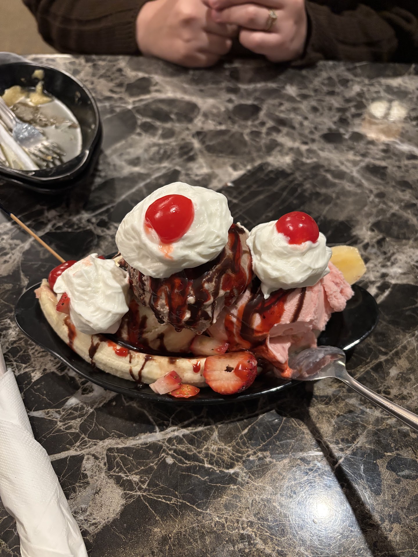 Everything was super clean and all the COVID-19 protocols were followed to a tee. Every staff person was wearing their mask properly and communicated just fine with us. They had spray sanitizer on each table.