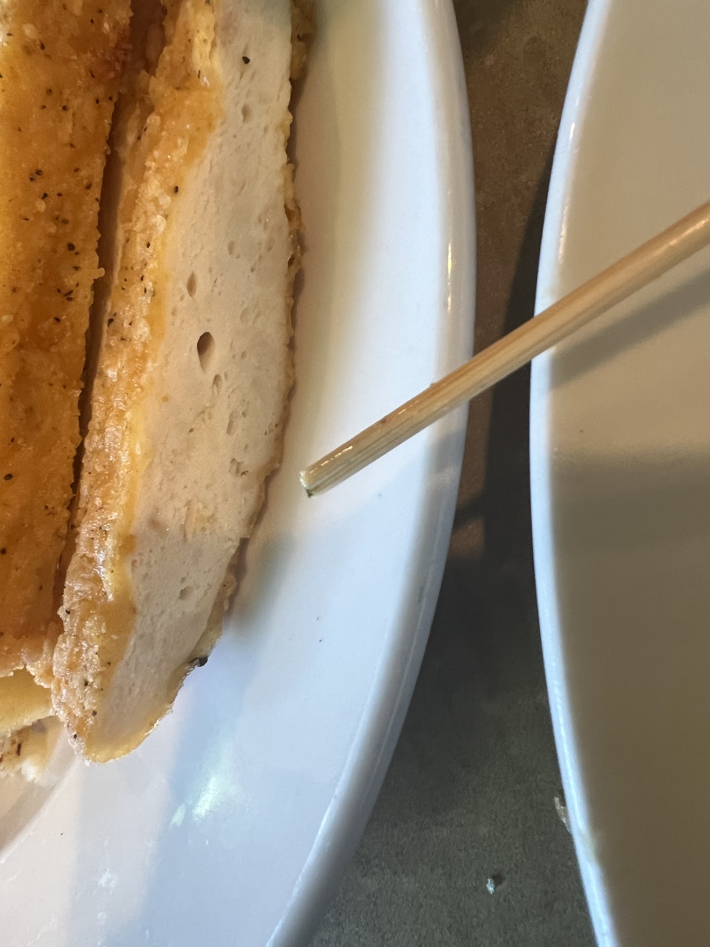 At this point we just gave up on the expectations of good service, and had requested take out boxes for our leftovers from the host. We still had lots of food left and were given two 16 oz soup containers for breakfast food. When asked for more reasonable containers to fit our food so it actually fits and doesn’t get smushed together, we then got brown cardboard boxes. At this point this was pretty disgusting to us and wasn’t acceptable. We asked the host one last time and we were given aluminum foil with what looked ljke hotdog containers from a hotdog stand?? We just used those and kept in the cardboard boxes so it wouldn’t stick to the box. This was hard to believe as the first time we came we had an actual takeout container, and I doubt if they did delivery they would put food presented like this.