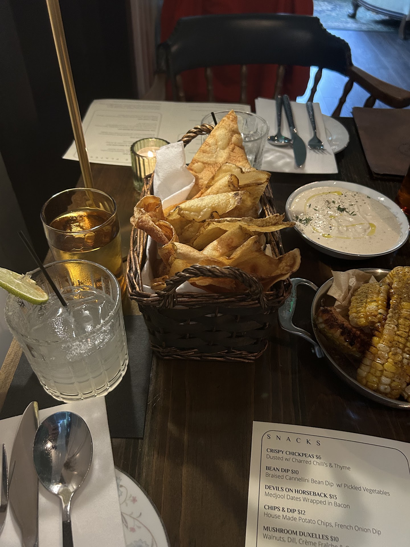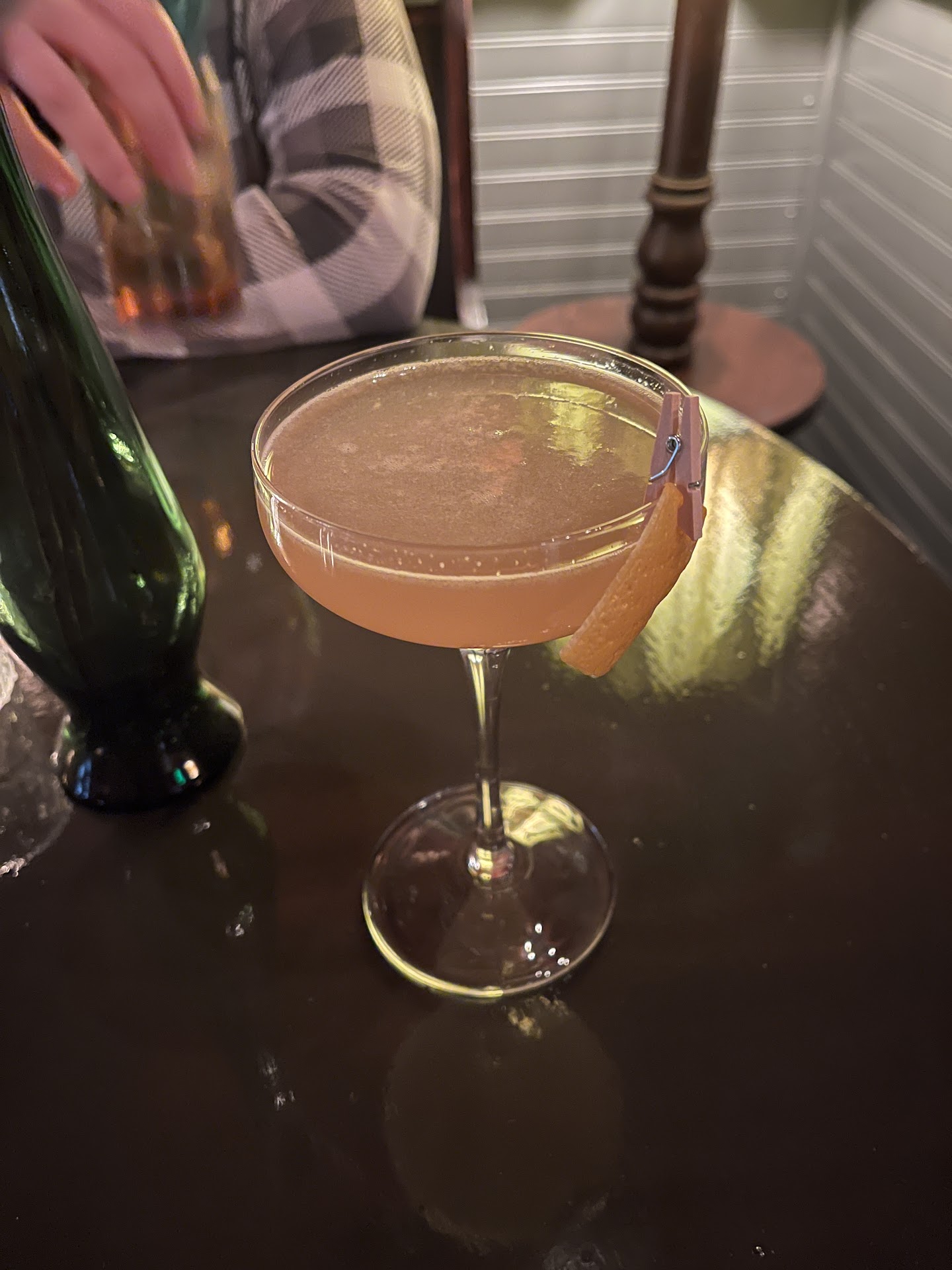 Starting off the night with their eclectic mix of cocktails, my wife and I were pleasantly surprised. The Bee's Knees was an exquisite blend of sweetness, acidity, and alcohol, perfectly balanced to create a cocktail that excites and soothes at the same time. The playful clothespin holding the lemon peel garnish added a delightful touch that showed their dedication to presentation.