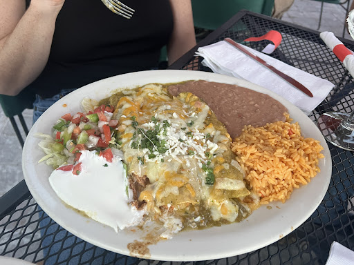 When we arrived and ordered, we learned that, in fact, both the rice and beans use chicken broth. Not vegetarian nor vegan. Being too hungry to go elsewhere, we decided to stay and make the best of it. I ordered the cheese enchiladas and my husband ordered the #11 vegetarian combo (1 cheese enchilada, 1 guacamole tostada and 1 bean taco). In lieu of rice and beans (which come with both our meals), they gave me a guacamole tostada and my husband got a side salad.