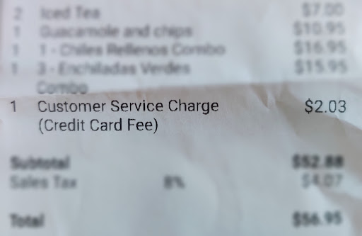 To top all that off, at the bottom of the check there was a suggested tip chart with the percentages calculated on the total including the tax and this fee. That's super unethical. Tips are calculated on the total before tax. I was a server for years. Do not play this game with me.