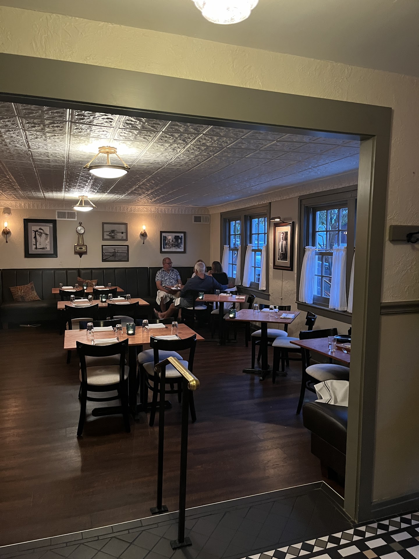 This most recent visit, this evening, was sub-par. I know it's early in the season, and the teams are probably still figuring out how to work with each other, but both the service and the food were not great. We didn't see our waitress for long periods and had to flag her down for a second drink while we were waiting for our main; we are trying to figure out what the purpose of the runner was when we still had to flag the waitress. Anyway, the cheese board didn't have any crackers, which was odd; the runner delivering the food just put it on the table with no cheese "tour" - it was taste and guess. Still not sure what we had - some sort of cracker or breadstick would have been great. For the main, the salmon was still pink inside when we got it and not up to temperature; okay for sushi grade, but not sure this was sushi grade, so fingers crossed for tomorrow. The entrees in general were only okay. The potatoes on the salmon dish were good, as was the pesto. The squash on the swordfish plate was only okay. While sitting in the bar area last time was fine, this time we experienced two overserved guests that made it difficult to converse. The ambiance was great once they left, but unfortunately we were done with our dinner, too. The menu was limited - we didn't see a chicken main, but maybe we missed it. Probably...