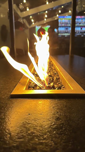 The atmosphere: The covered "outdoor" area was warm and the tables with built-in fire pits were nice and comfortable despite the 38 degree temps that night. We chose to sit inside since we wanted to keep kids away from the fires. The inside was also cozy, warm, and decorated for the upcoming holidays on our side of the restaurant while the other side was a more upscale sports bar. It was a little too loud for conversation in a group but at least the 90s/00s rock music was right in our wheelhouse.