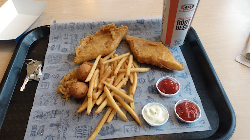 On my last visit I ordered strictly A&W menu items because I wasn't really getting the fish vibe. I got some chicken fingers and fries, cheese curds, and a large, refreshing Root beer. I can't confirm it, but I'm fairly certain that all of their fried food gets fried in the same oil, as everything had that hint of fish to it. I got that same pit of my stomach "bleh" feeling that I get after I eat here, and didn't finish my meal. The Root Beer was great though!